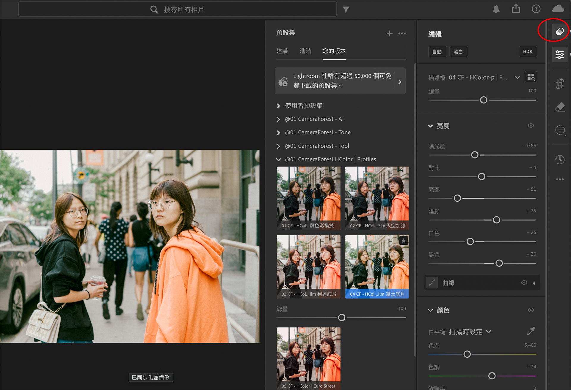Step 4 : 待完成同步,Lightroom Mobile也會出現CameraForest HColor Preset